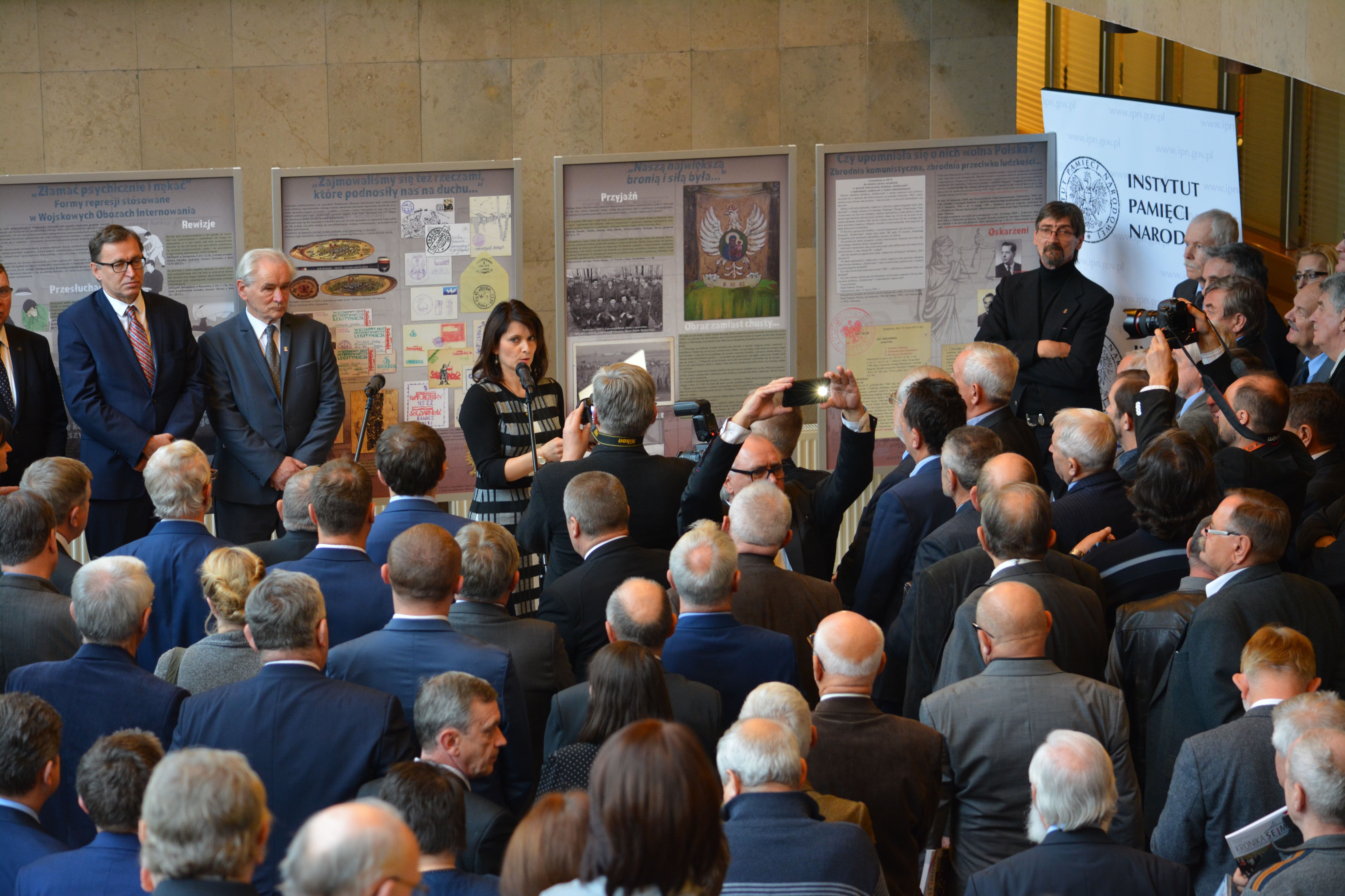 Podczas uroczystego otwarcia wystawy odczytano list Marka Kuchcińskiego, w którym marszałek Sejmu RP zaznaczył, że informacje o osobach odosobnionych w Wojskowych Obozach Internowania oraz o nasilonych wobec nich represjach nie odbiły się szerokim echem na świecie oraz w niezależnych mediach w Polsce. „Jestem przekonany, że ekspozycja stanie się przyczynkiem do upowszechnienia wiedzy o ludziach, którzy zaangażowali się w działalność na rzecz Polski wolnej i demokratycznej, a za swoją niepokonaną postawę wobec totalitarnego reżimu zostali surowo ukarani" – napisał Kuchciński.