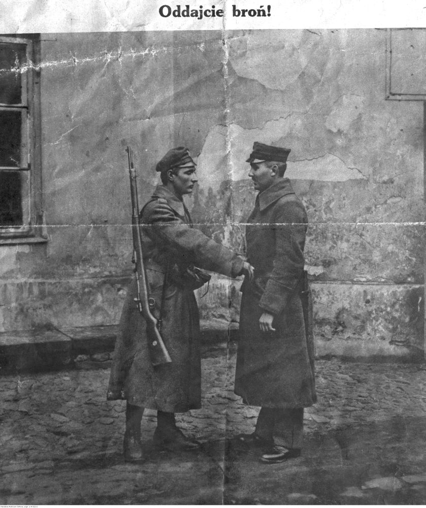 Rozbrajanie Niemców w Warszawie – plakat „Oddajcie broń!”, listopad 1918. Fot. NAC -