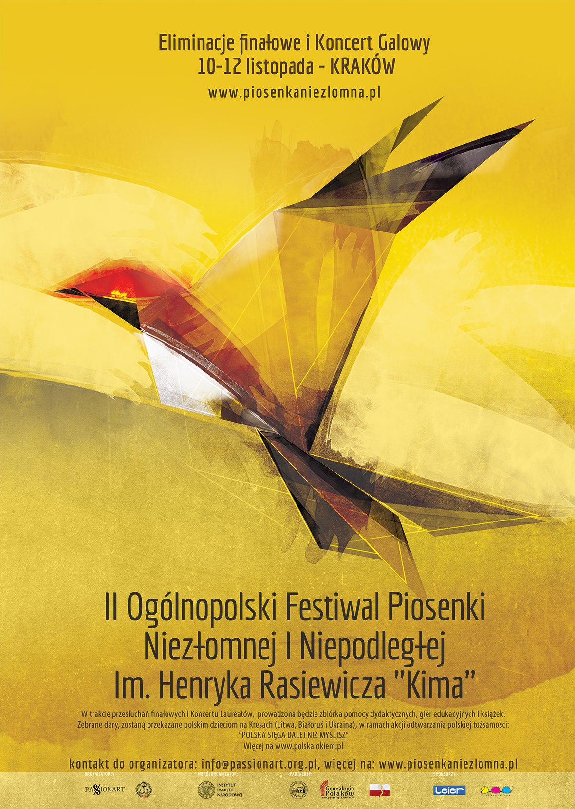W dniach 10–12 listopada w Krakowie odbyły się przesłuchania finałowe oraz koncert galowy z udziałem Orkiestry PASSIONART, solistów i wszystkich uczestników II Festiwalu Piosenki Niezłomnej i Niepodległej im. Henryka Rasiewicza KIMA. W przedsięwzięciu dla wzięło udział ponad 600 uczestników (głównie dzieci i młodzież), którzy poprzez muzykę dali świadectwo pamięci o Polskim Państwie Podziemnym, Armii Krajowej i Żołnierzach Niezłomnych. Współorganizatorem oraz partnerem merytorycznym festiwalu był Instytut Pamięci Narodowej, a organizatorami – Stowarzyszenie PASSIONART oraz Fundacja AK w Londynie.