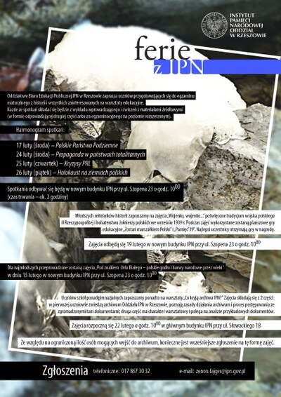 Zgłoszenia – telefoniczne: 017 867 30 32, e-mail: zenon.fajger@ipn.gov.pl