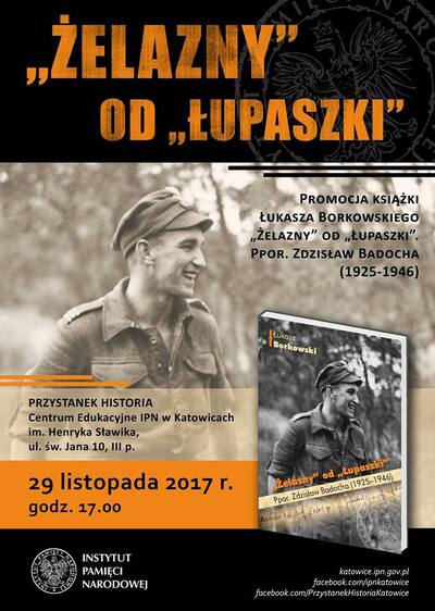 29 listopada 2017 r., o godz. 17.00, w Centrum Edukacyjnym IPN w Katowicach „Przystanek Historia”, przy ul. św. Jana 10, odbyła się promocja książki „»Żelazny« od »Łupaszki«. Ppor. Zdzisław Badocha (1925–1946)” autorstwa Łukasza Borkowskiego z Oddziałowego Archiwum IPN w Katowicach.