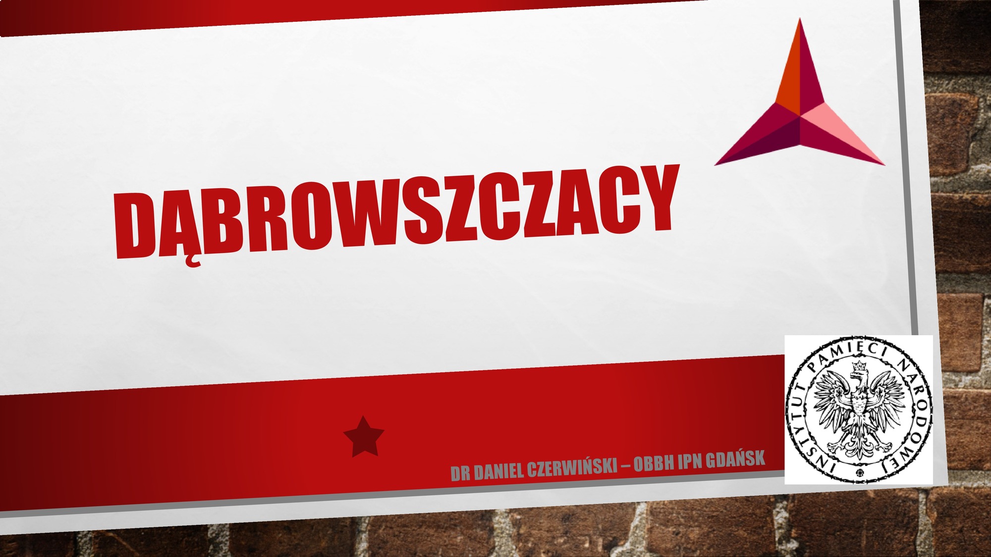 20 czerwca br. w naszej siedzibie odbyło się spotkanie poświęcone dekomunizacji. Referat o Dąbrowszczakach wygłosił dr Daniel Czerwiński, pracownik Oddziałowego Biura Badań Historycznych. Przedstawił w nim zarówno znane, jak i pionierskie ustalenia na temat historii tej formacji. Prezentujemy kilka slajdów z jego prezentacji pt. „Dąbrowszczacy” wraz z opisem. Pełna wersja prezentacji wraz z wybraną bibliografią dostępna jest w załączniku. Przypominamy, że w związku z Ustawą o dekomunizacji IPN zaleca zmianę nazwy tej ulicy. Dotyczy to kilku polskich miast, m.in. Gdańska, Olsztyna i Warszawy.