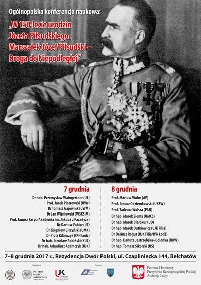 Urząd do Spraw Kombatantów i Osób Represjonowanych, Instytut Historii i Stosunków Międzynarodowych Uniwersytetu Jana Kochanowskiego w Kielcach, Filia w Piotrkowie Trybunalskim oraz Oddział Instytutu Pamięci Narodowej w Łodzi zorganizowały w dniach 7-8 grudnia 2017 r. ogólnopolską konferencję naukową „W 150-lecie urodzin Józefa Piłsudskiego. Marszałek Józef Piłsudski – Droga do Niepodległej”.
