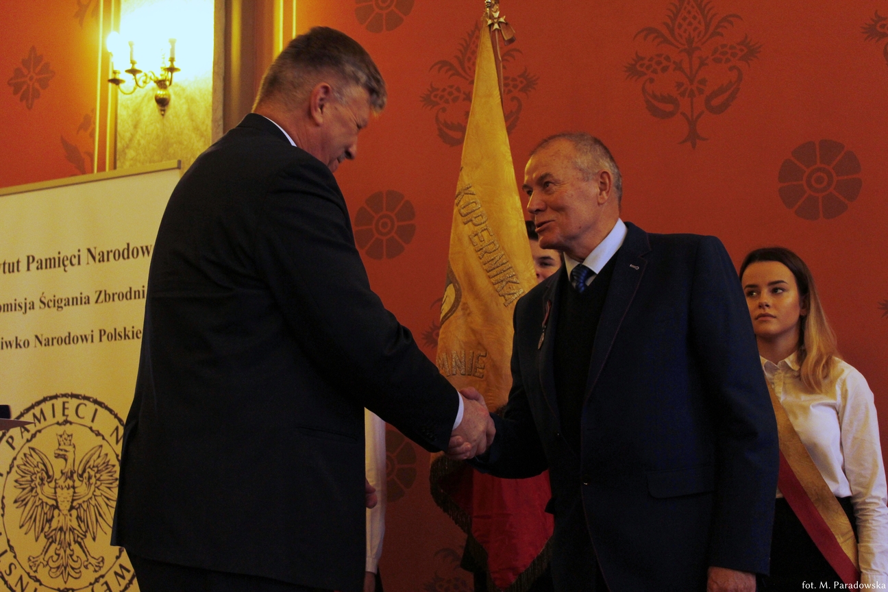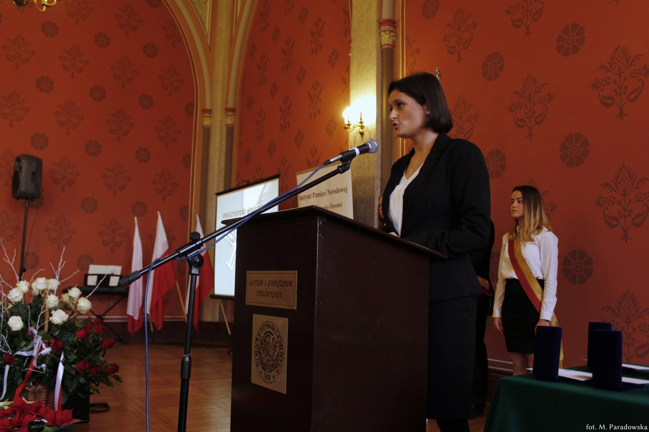 W auli Zespołu Szkół Ogólnokształcących nr 1 Chełmnie odbyła się uroczystość wręczenia Krzyży Wolności i Solidarności. W imieniu Prezydenta Rzeczypospolitej Polskiej Andrzeja Dudy odznaczenia wręczył prezes Instytutu Pamięci Narodowej dr Jarosław Szarek. Słowo wstępne w imieniu Delegatury IPN w Bydgoszczy wygłosiła naczelnik Edyta Cisewska.