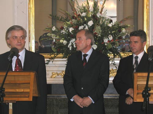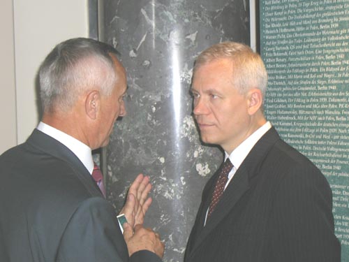 Następnie zabrali głos: prof. Klaus Ziemer z Niemieckiego Instytutu Historycznego, Włodzimierz Cimoszewicz minister Spraw Zagranicznych, prof. Władysław Bartoszewski oraz Lech Kaczyński Prezydent Warszawy.