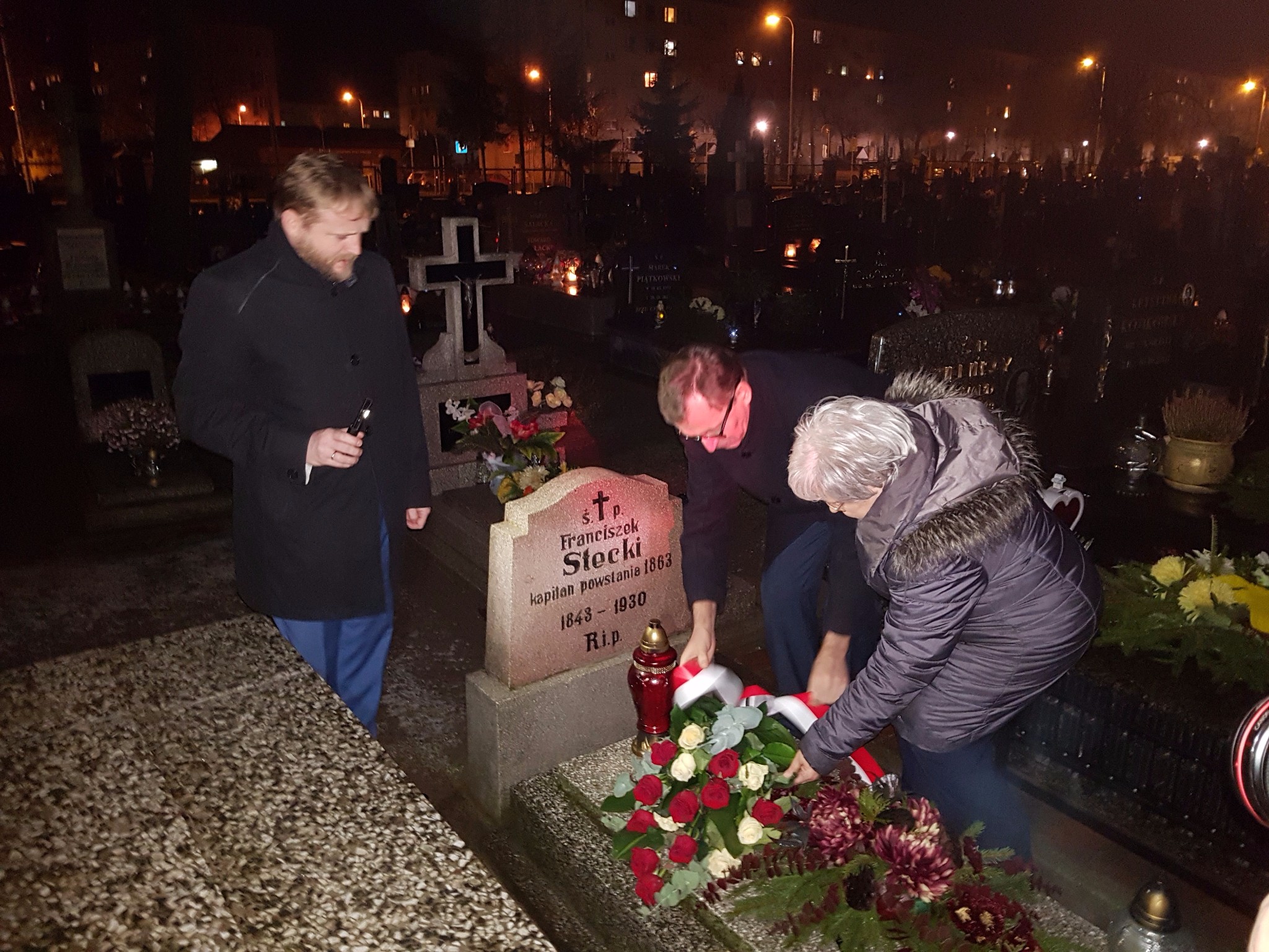 Po spotkaniu Prezes IPN udał się na cmentarz parafialny w Działdowie, gdzie na grobie Franciszka Teodora Steckiego (1843–1930) złożył kwiaty. Franciszek Teodor Stecki jest wspaniałym przykładem lokalnego patrioty. Ciężko ranny w powstaniu styczniowym, cudem został ocalony od wywózki na Sybir, był następnie aktywnym uczestnikiem antypruskich akcji niepodległościowych. Przez długie lata swojego życia związany był z Działdowem.