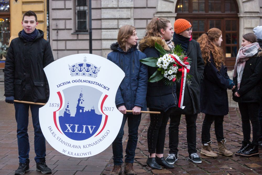 Symboliczną opiekę nad odsłoniętą tablicą przejęła młodzież XLIV Liceum Ogólnokształcącego im. księdza Stanisława Konarskiego w Krakowie.