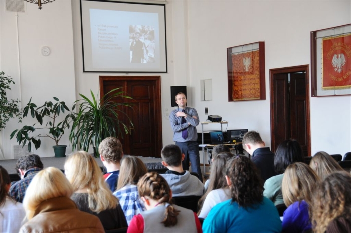 Paweł Miedziński przeprowadził wykład, podczas którego opowiedział historię aparatu bezpieczeństwa w Polsce Ludowej. Następnie uczniowie uczestniczyli w warsztatach, podczas których Zofia Fenrych prezentowała i komentowała fragmenty filmów fabularnych ukazujących specyfikę pracy Urzędów Bezpieczeństwa i Służby Bezpieczeństwa. Podczas zajęć przeprowadzonych przez Marcina Ozgę uczniowie mogli poznać specyfikę pracy operacyjnej. Natomiast Grzegorz Czapski przeprowadził ćwiczenia z materiałami źródłowymi dotyczącymi Ruchu Wolność i Pokój.