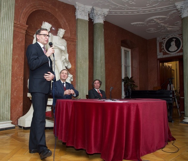 Gospodarz uroczystości, dyrektor Biblioteki Kórnickej Polskiej Akademii Nauk prof. Tomasz Jasiński opowiedział o historii Pałacu Działyńskich i reprezentacyjnej Sali Czerwonej. Następnie prof. Mikołajczak przybliżył patrona Medalu – króla Przemysła II. Podkreślił, że Klub poszukiwał patrona mocno związanego z Wielkopolską i uznał, że wybór władcy, który zjednoczył państwo po rozbicu dzielnicowym będzie odpowiednim symbolem uosabiającym idee Klubu.
