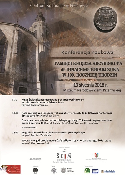 Instytut Pamięci Narodowej Oddział w Rzeszowie zaprasza do udziału w konferencji, która odbędzie się 13 stycznia 2018 r. w Muzeum Narodowym Ziemi Przemyskiej w Przemyślu, pl. płk. Berka Joselewicza 1. Konferencja poświęcona „Pamięci księdza arcybiskupa dr. Ignacego Tokarczuka w 100. rocznicę urodzin”, której partnerem jest rzeszowski oddział Instytutu Pamięci Narodowej. Jednym z prelegentów będzie dr Mariusz Krzysztofiński, który przedstawi referat na temat „Duchowa i materialna pomoc biskupa Ignacego Tokarczuka opozycjonistom przed i po roku 1981”.