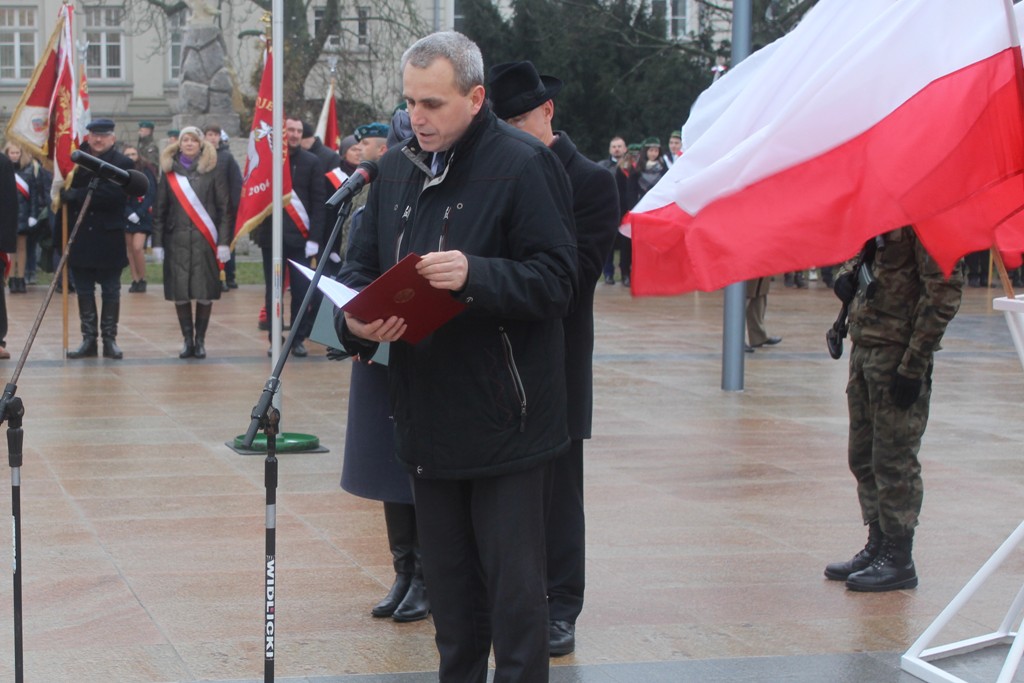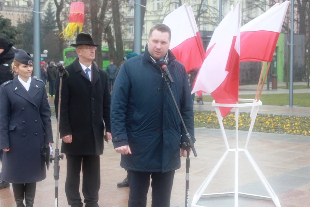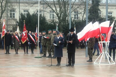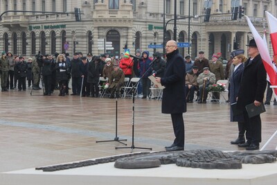 Następnie dyrektor lubelskiego IPN, Marcin Krzysztofik, przybliżył zebranym historię pomników i gróbów poświęconych Nieznanemu Żołnierzowi. W swojej wypowiedzi siegnął do korzeni idei poświęcenia miejsca Nieznanemu Żołnierzowi, czyli do Francji i Wielkiej Brytanii po I wojnie światowej, opowiedział również o warszawskim Grobie Nieznanego Żołnierza, by przejść do lubelskiego monumentu. Zaznaczył, że płytę poświęconą Nieznanemu Żołnierzowi w Lublinie w 1925 r. położyli lubelscy członkowie Towarzystwa Gimnastycznego "Sokół" w hołdzie legionistom. Odczytał również list prezesa IPN, dr. Jarosława Szarka, skierowany do uczestników uroczystości, który został dołączony poniżej.