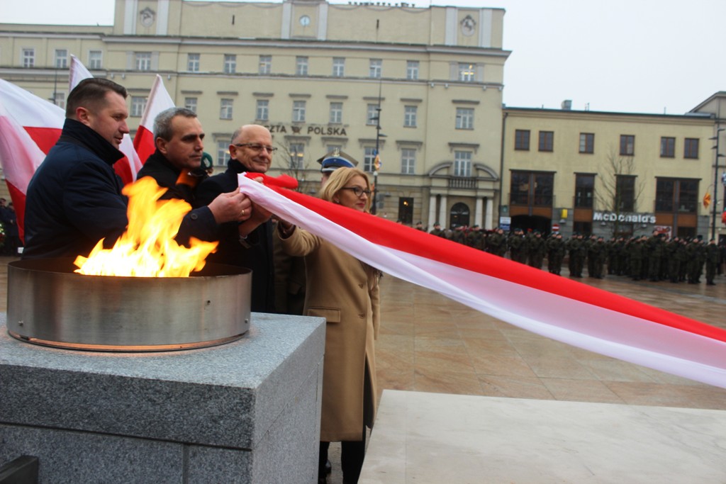 Prezydent Miasta Lublina Krzysztof Żuk, wojewoda lubelski Przemysław Czarnek, sekretarz Urzędu Marszałkowskiego Województwa Lubelskiego, Anna Augustyniak (reprezentująca marszałka województwa lubelskiego Sławomir Sosnowski), dyrektor Instytutu Pamięci Narodowej Oddział w Lublinie Marcin Krzysztofik oraz komendant Garnizonu Lublin mjr Michał Szmajda dokonali uroczystego odsłonięcia odnowionego pomnika Nieznanego Żołnierza na placu Litewskim. Odnowiony monument nawiązuje do pierwotnego pomnika z 3 sierpnia 1925 r.