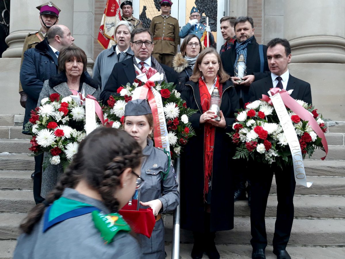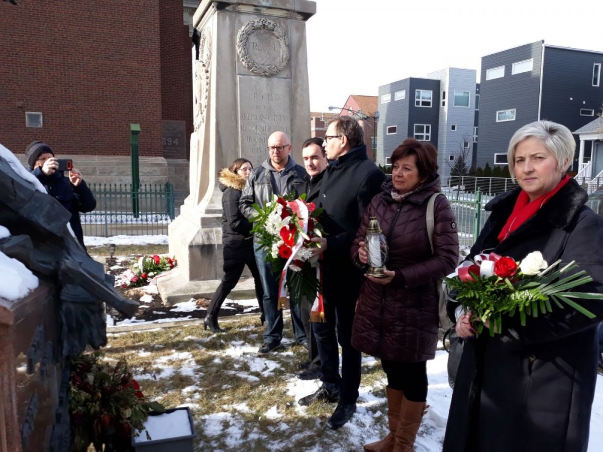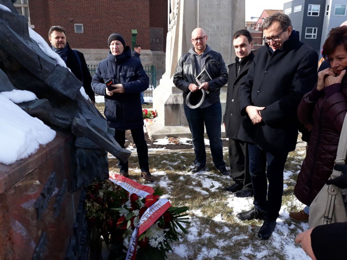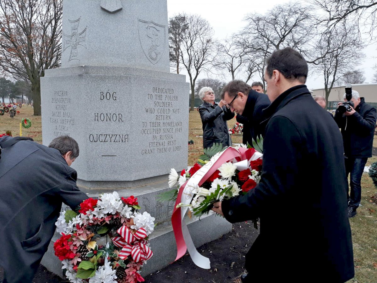 Dr Jarosław Szarek wraz z delegacją IPN uczestniczył we Mszy św. w kościele Trójcy Świętej. W tej niezwykłej uroczystości licznie wzięła udział Polonia, harcerze, przedstawiciele szkół polonijnych, obecni byli konsulowie RP Piotr Janicki i Piotr Semeniuk, przedstawiciele Narodowych Sił Zbrojnych, a także grupy rekonstrukcyjne oraz członkowie Zrzeszenia Nauczycieli Polskich w Ameryce, na zaproszenie którego delegacja IPN przybyła do Chicago. Po Mszy św. prezes Jarosław Szarek złożył w katakumbach świątyni ziemię z Kwatery Ł na warszawskich Powązkach (z tzw. Łączki). Po złożeniu kwiatów i zapaleniu zniczy delegacja IPN wraz z prezesem spotkała się z Polonią.