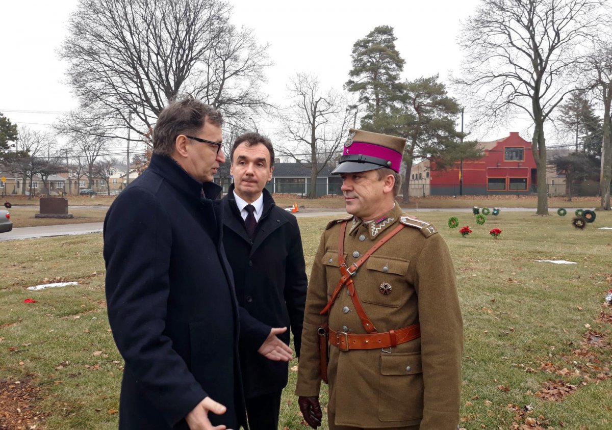 Po południu prezes IPN spotkał się z burmistrzem miasta Niles – Andrew Przybylo, któremu podziękował za wsparcie inicjatywy nadania jednej z ulic w tym mieście imienia gen. Andersa. Następnie udał się na cmentarz św. Wojciecha w Niles, gdzie złożył kwiaty pod pomnikiem ku czci amerykańskich żołnierzy polskiego pochodzenia, poległych w bitwach I wojny światowej oraz żołnierzy armii Hallera. Pomnik został wzniesiony w 1928 r. staraniem organizacji Polish-American Gold Star Fathers' and Mothers' Association. Na cokole, pod tablicą pamiątkową wyryto nazwiska uhonorowanych żołnierzy piechoty i marynarki. Prezes Jarosław Szarek złożył kwiaty także pod pomnikiem katyńskim (autorstwa polskiego rzeźbiarza Wojciecha Seweryna), pod tablicą smoleńską oraz na grobie Agnieszki Wisły, jednej z 42 kobiet – ochotniczek ze Stanów Zjednoczonych, które jako pielęgniarki Polskiego Białego Krzyża w latach 1918–1921 opiekowały się rannymi żołnierzami w szpitalach wojskowych we Francji i w Polsce. W 1922 r. w Chicago Agnieszka Wisła założyła Komitet Pomocy Weteranom. Na koniec prezes Szarek złożył kwiaty pod pomnikiem Polskiego Żołnierza w kwaterze kombatanckiej cmentarza Maryhill w Niles.