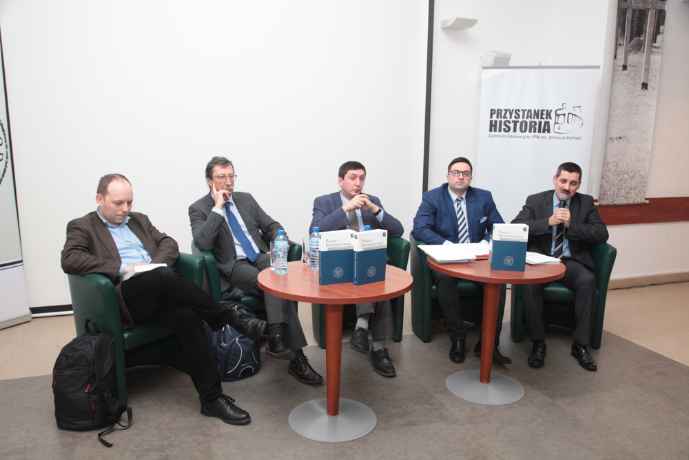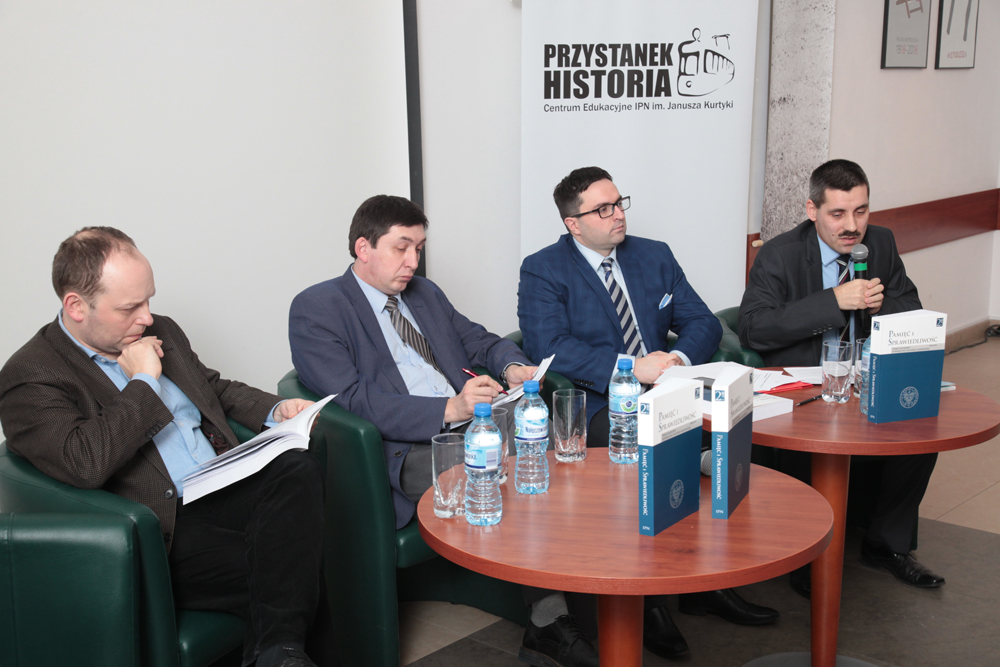 W dyskusji udział wzięli: prof. Marek Kornat, prof. Jan Żaryn, dr hab. Paweł Skibiński i dr hab. Mirosław Szumiło (redaktor naczelny „Pamięci i Sprawiedliwości”). Spotkanie poprowadził dr Rafał Łatka (sekretarz redakcji).