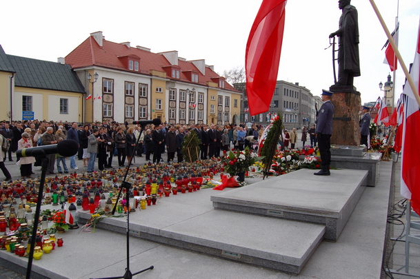 W związku z tragedią pod Smoleńskiem pierwotny przebieg uroczystości, planowanej jako Marsz Katyński, został zmieniony. Pod Pomnikiem Katyńskim stanęły poczty sztandarowe, wystawiono wojskową i harcerską wartę, odczytano apel poległych, złożono wieńce i kwiaty. Modlono się zarówno za pomordowanych w Katyniu, jak i ofiary katastrofy. Łamiącym się ze wzruszenia głosem dyrektor Oddziału IPN w Białymstoku prof. Cezary Kuklo czytał list zamordowanego w 1940 r. podporucznika WP Władysława Gryko do żony i niespełna rocznej córeczki: „Ucałuj ode mnie Alinkę i powiedz jej, że to tatuś przesyła. Żegnając Ciebie jeszcze raz proszę – zachowaj spokój i pogodę ducha – dbaj o zdrowie, a wszystko będzie dobrze”. Wspominał zmarłego tragicznie Prezesa IPN prof. Janusza Kurtykę. Następnie zebrani przemaszerowali pod pomnik Marszałka Józefa Piłsudskiego, gdzie odmówiono modlitwy za zmarłych. Złożono kwiaty, zapalono znicze. Zebrani mogli obejrzeć ustawioną na placu obok pomnika wystawę „Zbrodnia Katyńska”, przygotowaną w OBEP IPN w Białymstoku.