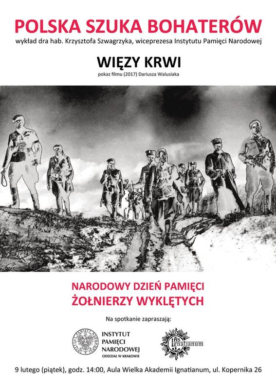 Wiceprezes Instytutu Pamięci Narodowej prof. Krzysztof Szwagrzyk wygłosił 9 lutego 2018 r. na Akademii Ignatianum w Krakowie wykład zatytułowany „Polska szuka bohaterów”. Podczas ilustrowanego pokazem zdjęć wystąpienia mówił o wysiłkach pracowników IPN, którzy starają się odnaleźć miejsca pochówku Żołnierzy Wyklętych. Patriotów, zamordowanych przez komunistyczne władze w czasach stalinowskich i pochowanych w bezimiennych mogiłach.