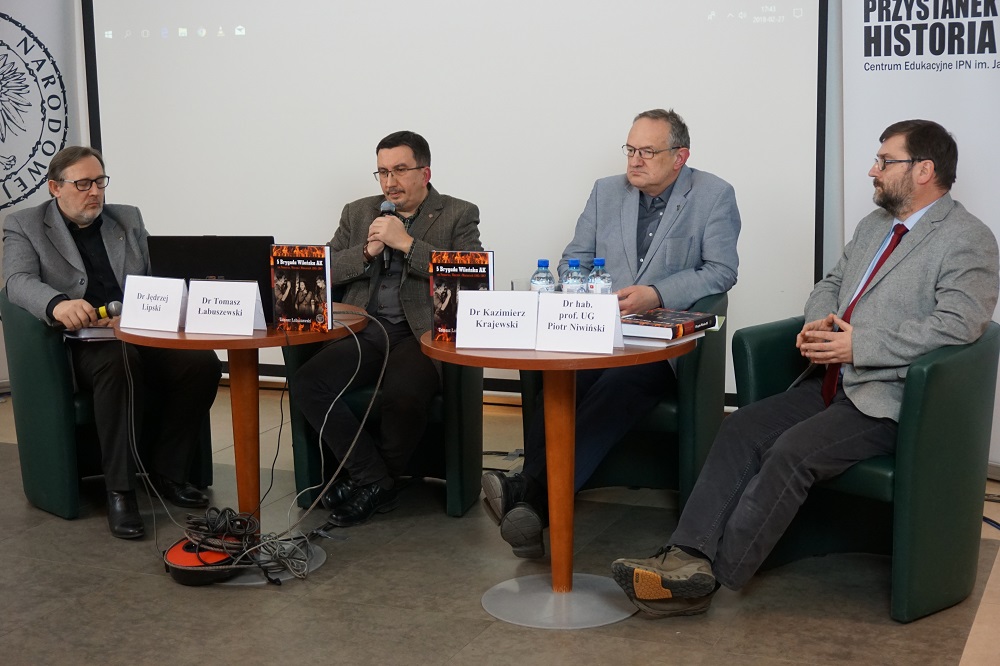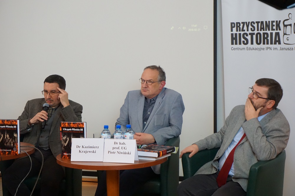 We wtorek 27 lutego br. w stołecznym Przystanku Historia odbyła się dyskusja wokół książki „5 Brygada Wileńska AK na Pomorzu, Warmii i Mazurach 1945–1947”. W rozmowie udział wzięli: dr Tomasz Łabuszewski (autor publikacji, naczelnik Oddziałowego Biura Badań Historycznych IPN w Warszawie), dr hab. prof. UG Piotr Niwiński (historyk, politolog) i dr Kazimierz Krajewski (historyk, Oddziałowe Biuro Badań Historycznych IPN w Warszawie). Spotkanie poprowadzi dr Jędrzej Lipski (filmowiec, dokumentalista, historyk).