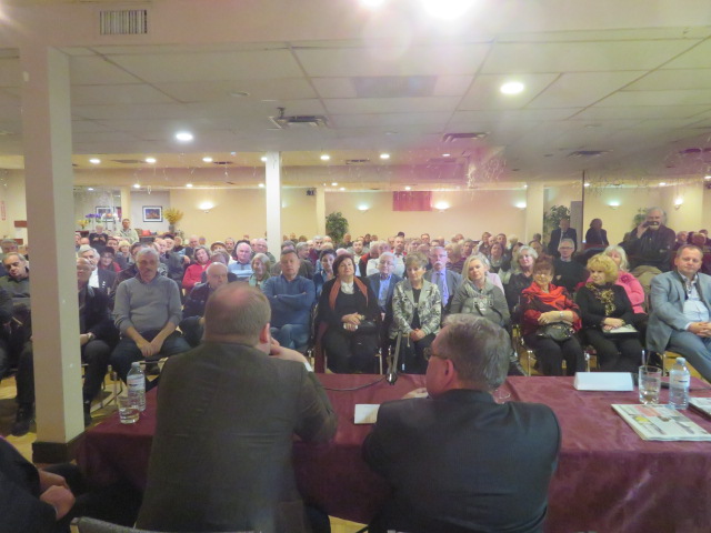 Prezes Jan Baster opowiedział o działalności Instytu od momentu powołania w 2000 roku do chwili obecnej, z uwzględnieniem zmian ustawowych. Szczególną uwagę poświęcił powstaniu w 2016 r. dwóch nowych jednostek merytorycznych w strukturze IPN – Biura Upamiętnienia Walk i Męczeństwa oraz Biura Poszukiwań i Identyfikacji, dekomunizacji przestrzeni publicznej, jak również wspomnianej wyżej ustawie penalizacyjnej. Omawiając tę ostatnią, wyraźnie zaznaczył, że jej celem pozostaje obrona dobrego imienia Polski i walka ze zniesławieniami, fałszywymi przekazami i kodami historycznymi. Jednocześnie potwierdził, że ustawa nie ogranicza wolności prowadzenia badań naukowych ani działalności artystycznej, przywołując adekwatne zapisy legislacji. Dyrektor Adam Siwek przybliżył specyfikę działalności Biura Upamiętnienia Walk i Męczeństwa. Opowiedział także o trudnościach napotkanych w procesie dekomunizacji przestrzeni publicznej. Wspomniał o współpracy kierowanej przez niego jednostki z Biurem Poszukiwań i Identyfikacji. Publiczność była szczególnie zainteresowana relacjami polsko-żydowskimi, współpracą polsko-ukraińską, dostępem do dokumentacji archiwalnej IPN, możliwością przekazania materiałów do zasobu Instytutu, katalogiem tajnych współpracowników i reakcjami na dyfamacje. Postulowano zwiększenie dystrybucji angiekskojęzycznych materiałów edukacyjnych na zagranicę: wydawnictw, gier, komiksów i wystaw, a także rozważenie dystrybucji internetowej publikacji. Przedstawiciele Polonii wyrażali gotowość współpracy z IPN jako ambasadorzy polskiej kultury, tradycji i historii w Kanadzie.