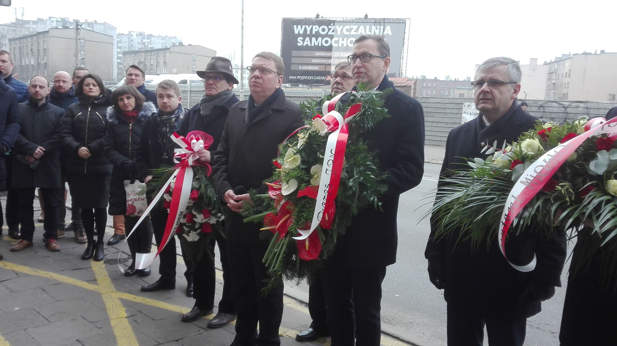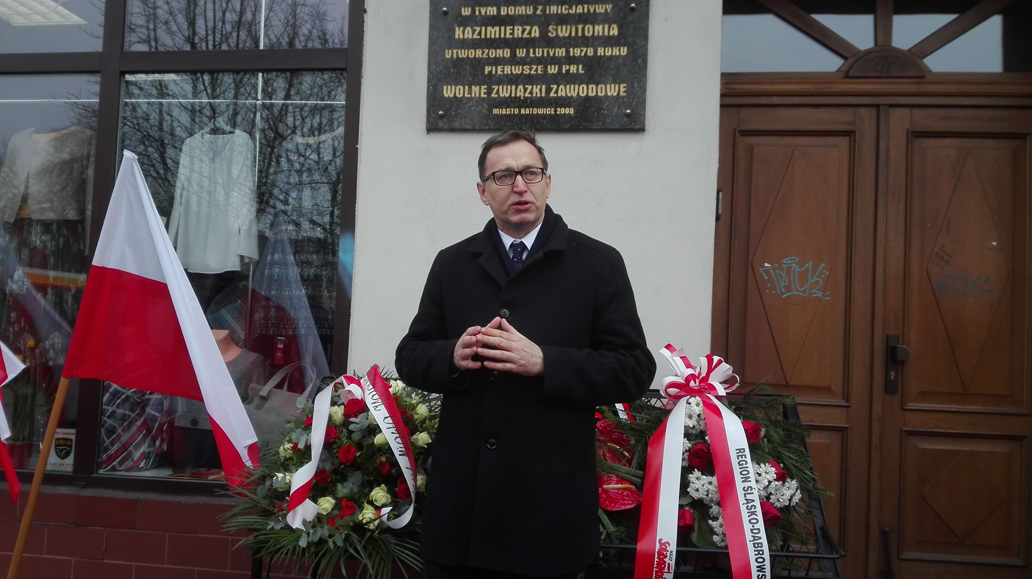 W Katowicach Prezes IPN dr Jarosław Szarek, z synami Kazimierza Świtonia Janem i Ryszardem oraz z Mariuszem Skibą, wiceprezydentem Miasta Katowice, Mirosławem Truchanem, zastępcą przewodniczącego Zarządu Regionu Śląsk-Dąbrowskiego „Solidarność“, przedstawicielami Oddziałów IPN w Katowicach, Krakowie oraz w Gdańsku, złożył kwiaty przy tablicy upamiętniającej powstanie Komitetu WZZ w Katowicach (ul. Mikołowska 30).