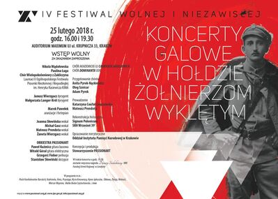Przed rozpoczęciem drugiego z niedzielnych koncertów gości przywitał dyrektor Oddziału IPN w Krakowie, dr hab. Filip Musiał. Głos zabrał także prezes IPN dr Jarosław Szarek. Mówił o najważniejszych ideałach przyświecających Żołnierzom Wyklętym, niezłomności, wierności i umiłowaniu wolności.