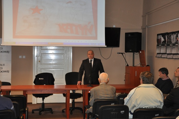 Wieczorem w siedzibie muzeum „Aresztu” miała miejsce przedpremierowa projekcja filmu „Katyń. Dół nr 8”. Film ten opowiada o Zbrodni Katyńskiej, ze szczególnym uwzględnieniem dotykając materii dołu nr 8, ostatniego dołu śmierci, którego historia do dziś stanowi wielką niewiadomą. Z tego dołu – odkrytego najpóźniej – wydobyto w 1943 r. zaledwie (według różnych źródeł) 10 lub 13 ciał polskich oficerów, po czym przerwano ekshumację, rzekomo z powodu plagi much. Po odbiciu Smoleńszczyzny z rąk Niemców Sowieci wydobyli z dołu nr 8 pozostałe zwłoki i wywieźli je w nieznanym kierunku, by nie kolidowały z oficjalną sowiecką wersją wydarzeń. Do dziś nie wiemy, co stało się ze zwłokami prawie 200 polskich oficerów zamordowanych w Lesie Katyńskim, które znajdowały się w dole nr 8. Po projekcji odbyło się spotkanie z twórcami filmu: reżyserem Bartkiem Bandołą, dr. Dominikiem Abłamowiczem (archeologiem, uczestnikiem ekshumacji w Lesie Katyńskim w latach 90.) oraz Rafałem Michalskim (historykiem z Instytutu Pamięci Narodowej).