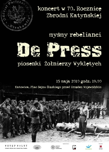 W programie Nocy Muzeów z IPN był także koncert zespołu De Press, współorganizowany przez nasz Oddział, wespół ze Stowarzyszeniem Pokolenie, Śląskim Urzędem Wojewódzkim oraz Urzędem Miasta Katowice. Zgromadzonych przywitali Piotr Uszok – Prezydent Miasta Katowice oraz dr Andrzej Drogoń – Dyrektor Oddziału IPN w Katowicach. Na Placu Sejmu Śląskiego zabrzmiały utwory z albumu „Myśmy rebelianci – piosenki Żołnierzy Wyklętych”.
