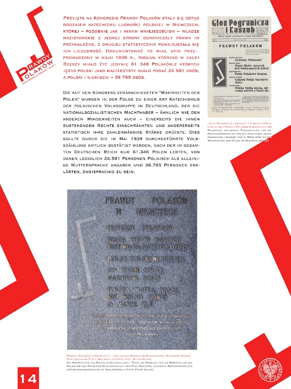 W przeddzień rocznicy kongresu w Berlinie w siedzibie Wojewódzkiej Biblioteki Publicznej w Opolu otwarta została wystawa „Prawdy Polaków. Manifestacja odwagi i wiary”, przygotowana przez Instytut Pamięci Narodowej. Na wystawie przedstawiono historię Związku Polaków w Niemczech, zilustrowano przygotowania do Kongresu i jego przebieg oraz przyjęte na Kongresie Prawdy Polaków. Wystawa została zaprojektowana przez Delegaturę IPN w Opolu w języku polskim i niemieckim. Ukazuje wpływ nowo powstałej II Rzeczypospolitej na życie Polaków w Niemczech i ich manifestacje polskości, zarówno na etnicznie polskich obszarach, jakimi były ziemie nad Odrą czy nad Bałtykiem, jak i na terytorium Niemiec środkowych i zachodnich.