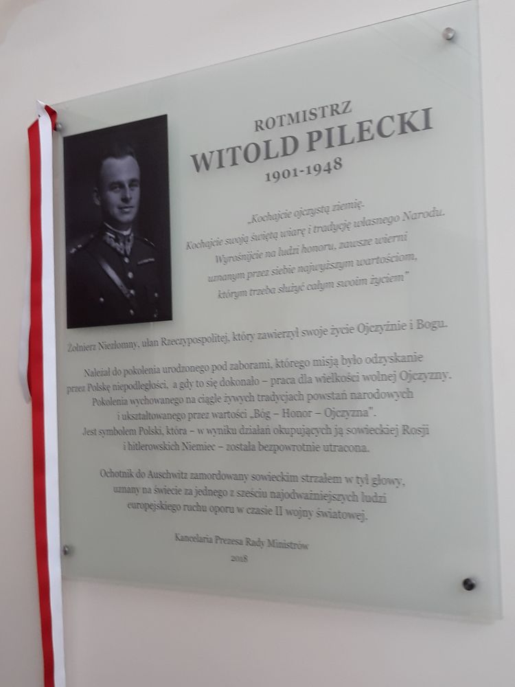 Tablicę poświęconą polskiemu bohaterowi odsłoniła córka Rotmistrza – Zofia Pilecka. W uroczystości, podczas której pokazano wystawę IPN poświęconą Witoldowi Pileckiemu, wziął udział prezes Instytutu Pamięci Narodowej Jarosław Szarek.