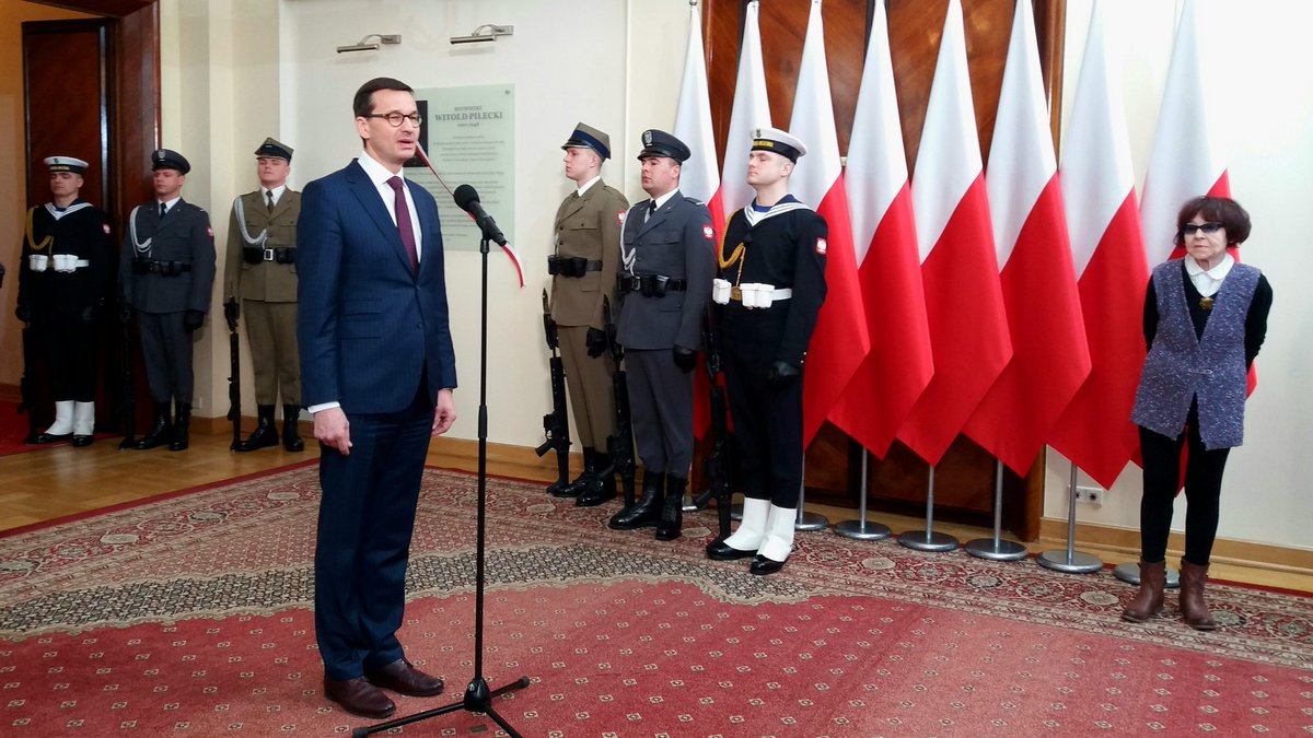 Premier przypomniał, że Pilecki „umierał kilka razy: został zamordowany przez komunistów jako żołnierz walczący o wolną Polskę, a następnie skazany na śmierć przez zapomnienie – po raz kolejny”. -–Prawda kilkanaście lat temu zaczęła dopominać się o swoje, młodzi ludzie zaczęli coraz głośniej mówić o Pileckim. Jest bohaterem naszych czasów – podkreślił Mateusz Morawiecki.