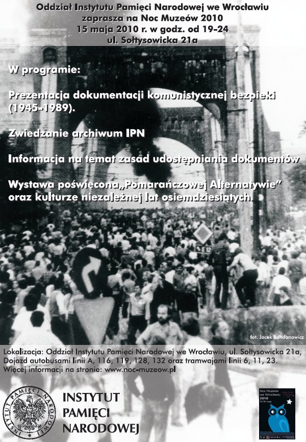 Oddział Instytutu Pamięci Narodowej pragnie serdecznie podziękować pracownikom Komendy Wojewódzkiej Policji we Wrocławiu za pomoc okazaną podczas organizowania tegorocznej Nocy Muzeów.