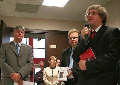 „Urząd Bezpieczeństwa w Łomży – powstanie i działalność (1944–1956)” to najnowsza książka dr. Krzysztofa Sychowicza, historyka z Instytutu Pamięci Narodowej Oddział w Białymstoku. Jej oficjalna prezentacja odbyła się 18 maja 2010 r. w Państwowej Wyższej Szkole Informatyki i Przedsiębiorczości w Łomży i została poprzedzona otwarciem wystawy „Zbrodnia Katyńska”. Wystawę otworzyli dyrektor białostockiego oddziału Instytutu Pamięci Narodowej prof. dr hab. Cezary Kuklo i rektor dr hab. Robert Charmas. Wydarzenie to zgromadziło nie tylko studentów i pracowników uczelni, ale także bardzo liczne grono osób zainteresowanych prezentowaną tematyką, wśród których był bp Tadeusz Zawistowski oraz nauczyciele historii. Na sali byli także świadkowie wydarzeń z tamtych lat.