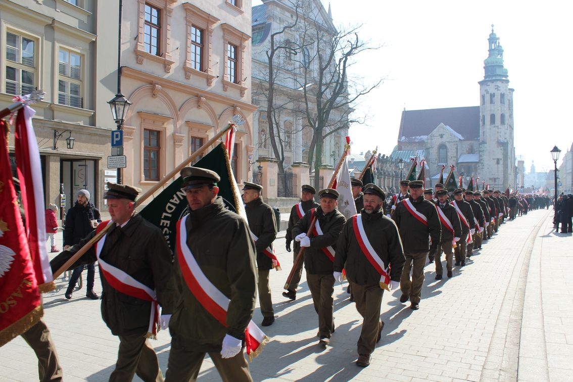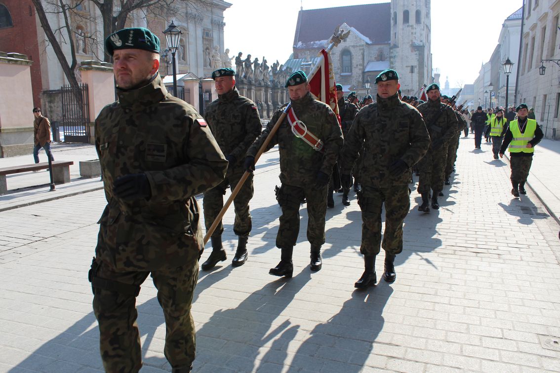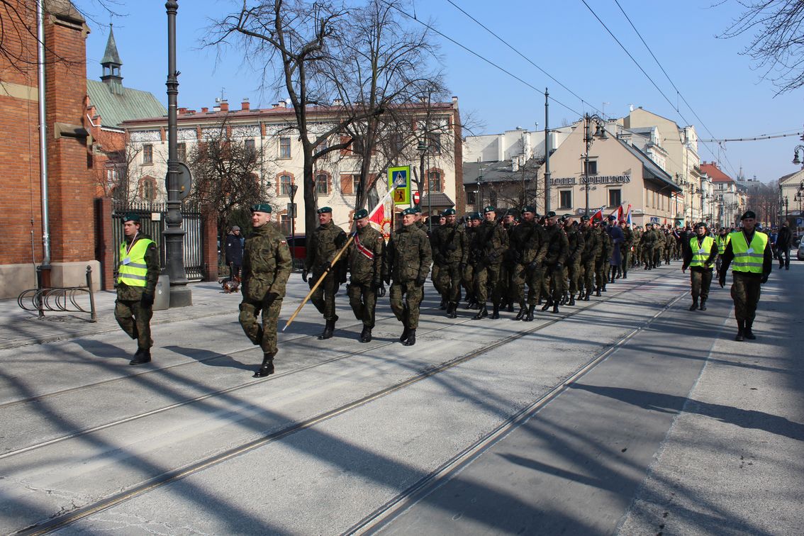 W pochodzie uczestniczyli m.in.: Krakowski Szwadron Ułanów im. J. Piłsudskiego, Kompania Honorowa Wojska Polskiego, a także m.in. delegacje: 6. Brygady Powietrznodesantowej im. gen. Sosabowskiego, Jednostki Wojskowej „Nil”, Centrum Operacji Lądowych – Dowództwa Komponentu Lądowego, Wojsk Specjalnych w Krakowie, 5. Batalionu Dowodzenia im. gen. Hallera, Żandarmerii Wojskowej oraz liczne poczty sztandarowe organizacji społecznych i związkowych, kombatanci, harcerze i młodzież szkolna.