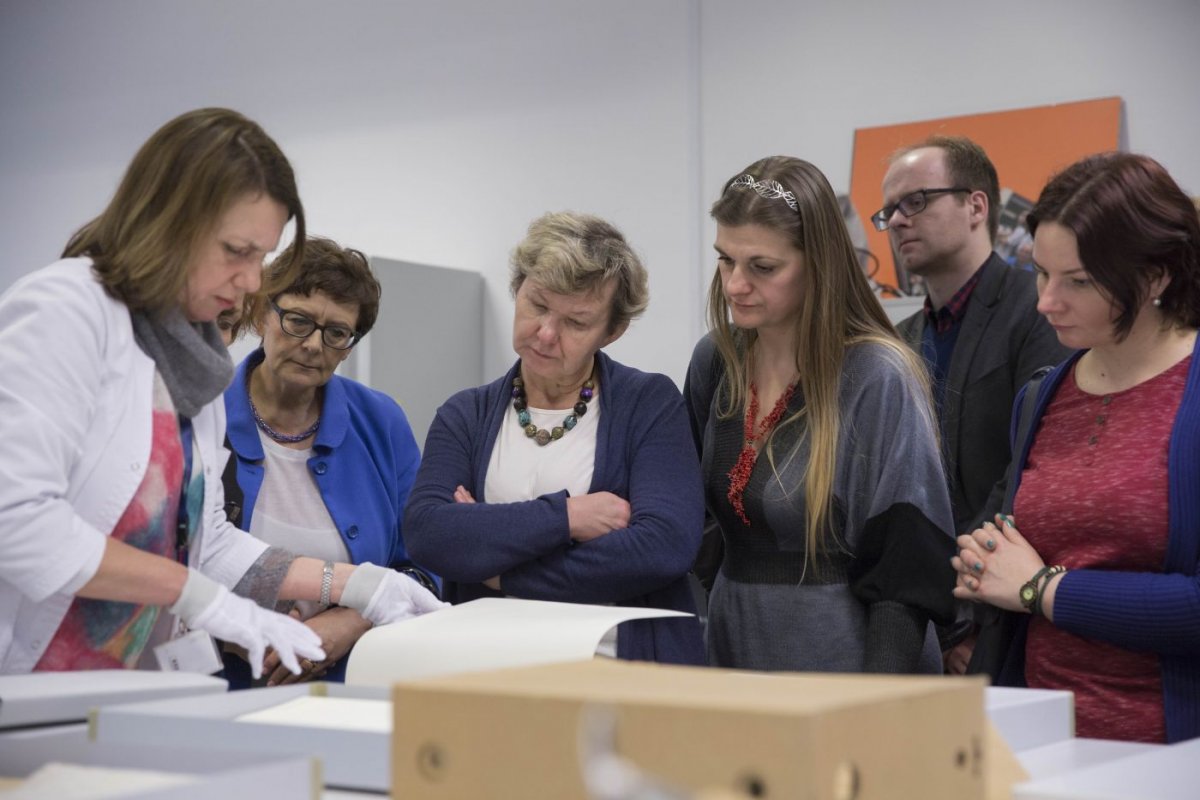 W ramach spotkania nauczyciele odwiedzili także magazyn archiwalny i pracownię konserwacji dokumentów, gdzie poznali podstawowe zasady przechowywania, zabezpieczania i konserwacji archiwaliów. Następnie podczas pracy pod kierunkiem metodyka, uczestnicy warsztatów opracowali scenariusze lekcji z wykorzystaniem zaprezentowanych i udostępnionych źródeł.
