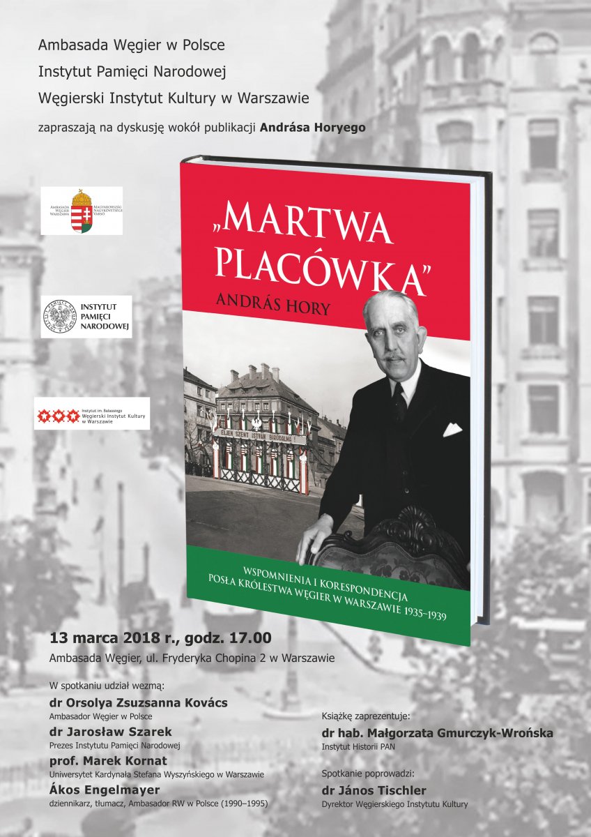 W spotkaniu na temat książki Horyego udział wzięli: dr Orsolya Zsuzsanna Kovács – ambasador Węgier w Polsce, dr Jarosław Szarek – prezes IPN, prof. Marek Kornat z Uniwersytetu Kardynała Stefana Wyszyńskiego w Warszawie, Ákos Engelmayer – dziennikarz, tłumacz, ambasador RW w Polsce (1990–1995).