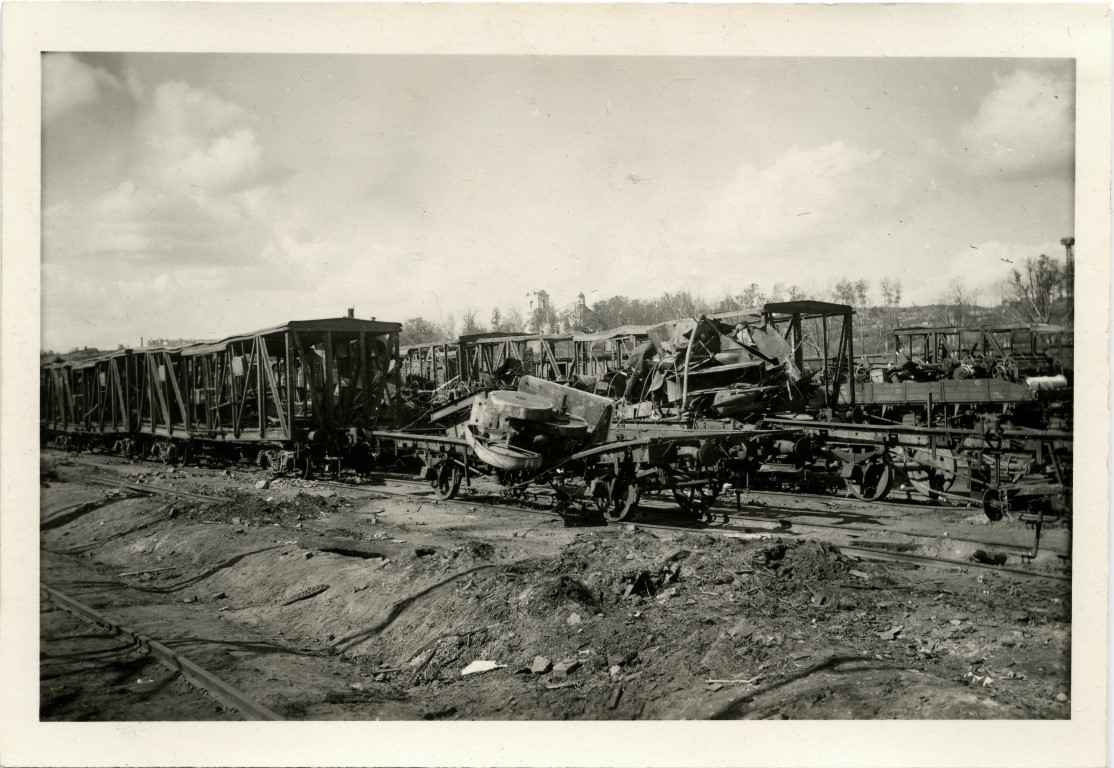 Zniszczone wagony towarowe na stacji w Smoleńsku, wrzesień 1941 r. -