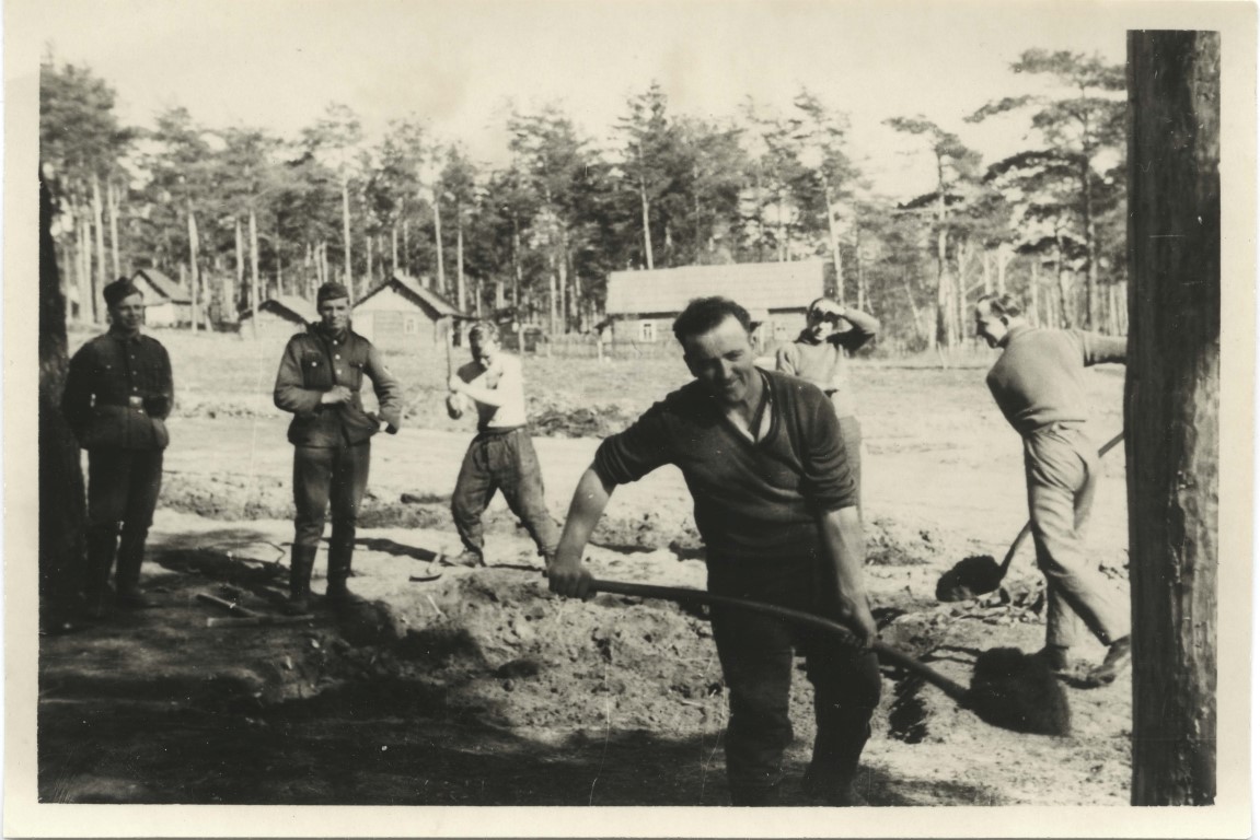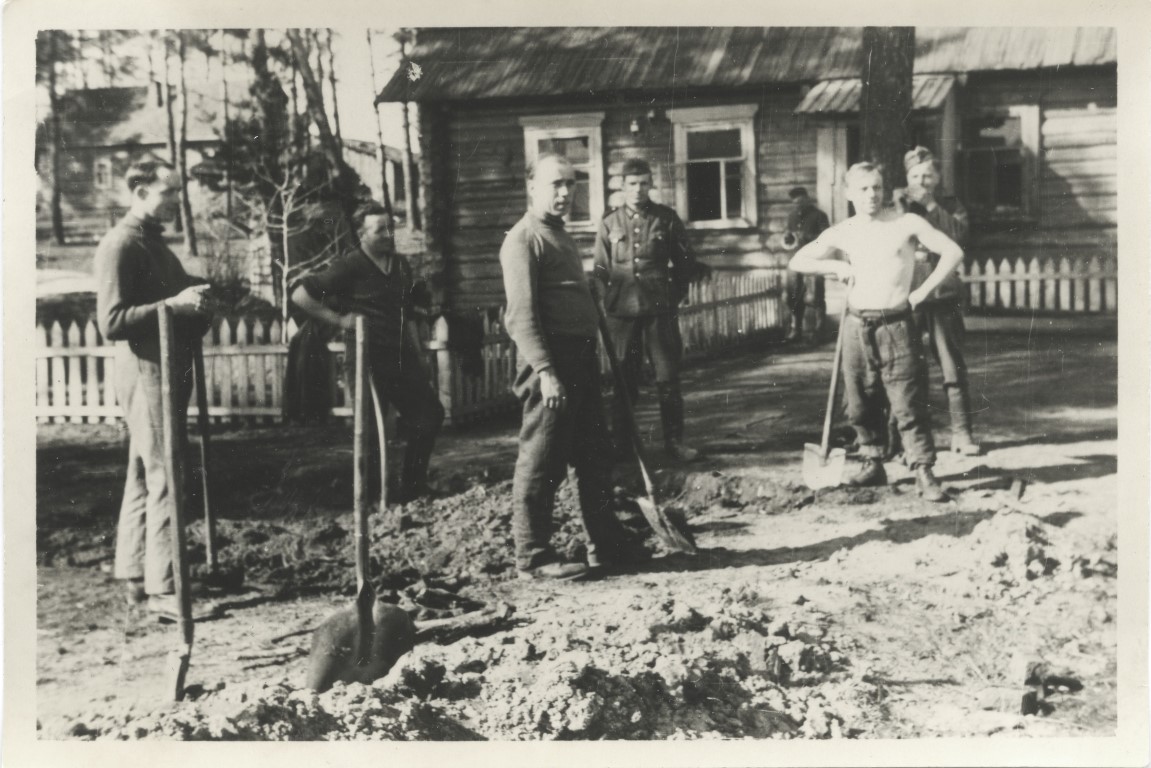 Żołnierze niemieccy podczas budowy umocnień i baraków w miejscowości Schnakendorf koło Gniezdowa wiosną-latem 1942 r. -