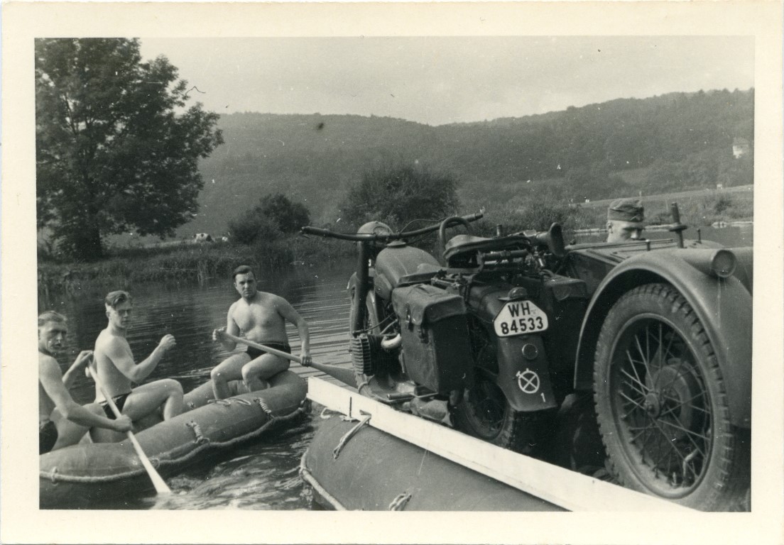 Przeprawa żołnierzy niemieckich przez rzekę -