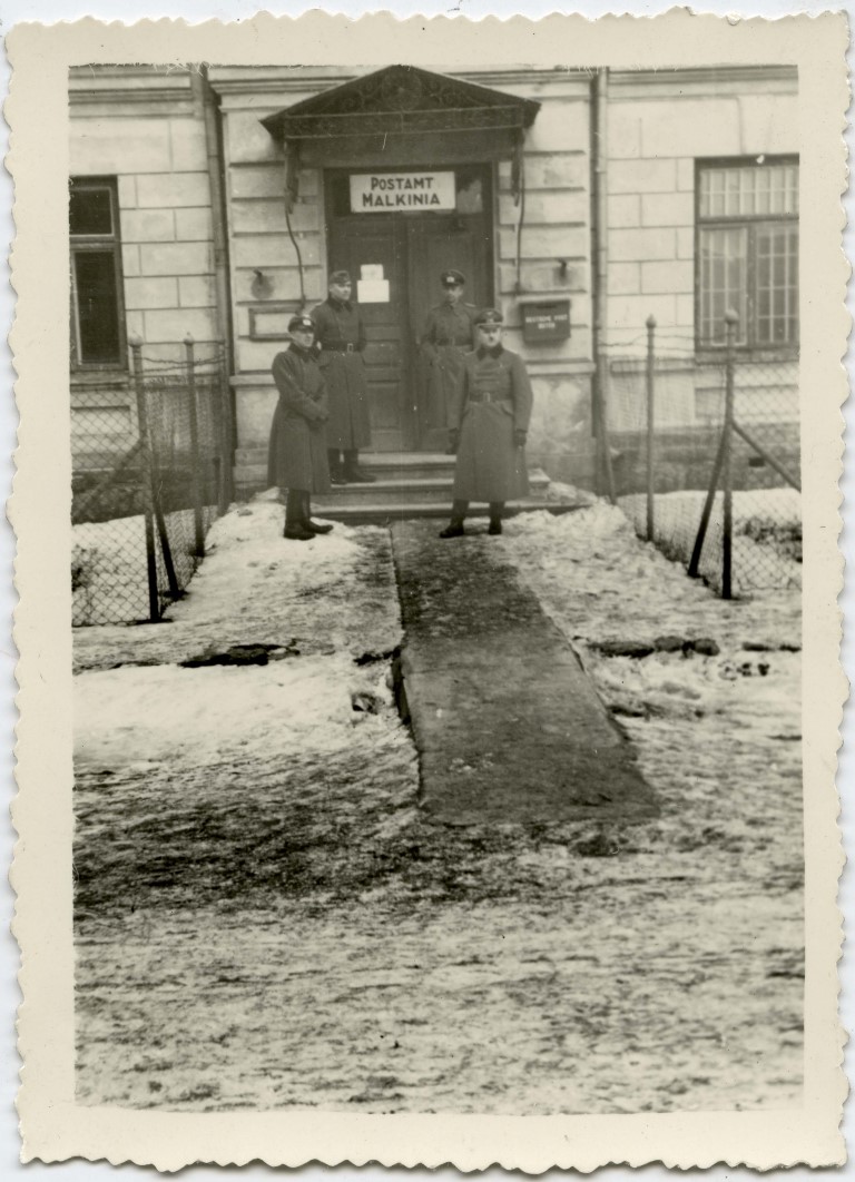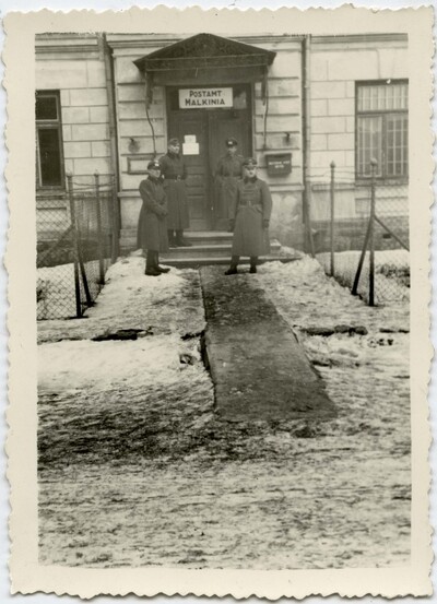 Żołnierze niemieccy przed pocztą w Małkini, kwiecień 1941 r. -