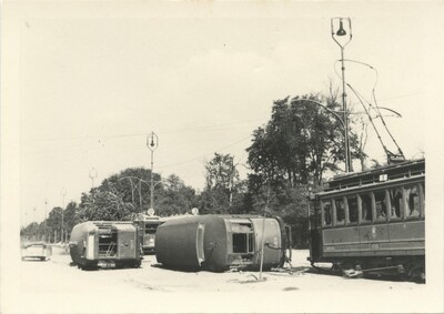 Tramwaje na ulicy podczas kapitulacji Warszawy, 1939 r. -