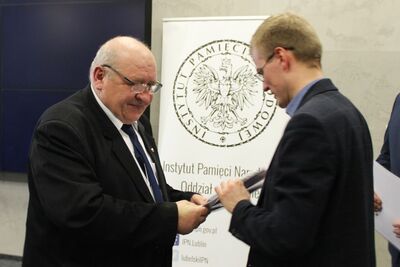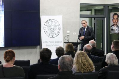 W piątek odbyła się pierwsza część uroczystości w Lublinie. W siedzibie lubelskiego IPN zgromadzonych gości przywitał dyrektor oddziału Marcin Krzysztofik. Następnie głos zabrał dr hab. Tomasz Panfil (p.o. naczelnika Oddziałowego Biura Edukacji IPN w Lublinie). Kolejnym punktem programu było wręczenie przez Marka Franczaka, syna „Lalusia”, pamiątkowych odznak. Otrzymali je m.in. Wicemarszałek Sejmu Beata Mazurek, Marianna Krasnodębska (odznaczona medalem „Sprawiedliwy Wśród Narodów Świata”, żołnierz AK), dyrektor lubelskiego IPN Marcin Krzysztofik, pracownicy naszego oddziału: dr hab. Tomasz Panfil, Artur Piekarz, a w imieniu wojewody lubelskiego Przemysława Czarnka odznakę przyjął Pełnomocnik Wojewody Lubelskiego do Spraw Ochrony Dziedzictwa Narodowego i Spraw Kombatantów Waldemar Podsiadły.