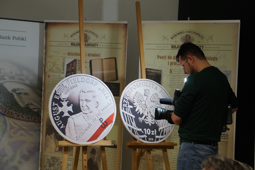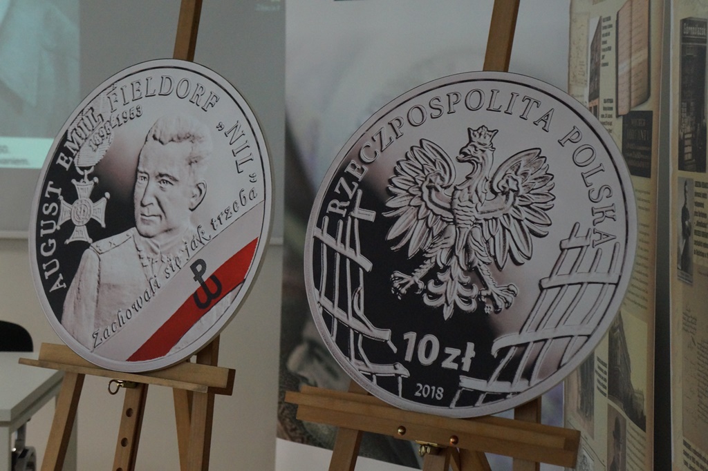 14 marca 2018 r., o godz. 11.00, w Centrum Edukacyjnym IPN Przystanek Historia w Katowicach im. H. Sławika, przy ul. św. Jana 10 (3 piętro) odbyło się spotkanie z okazji emisji przez NBP nowej monety kolekcjonerskiej w serii „Wyklęci przez komunistów żołnierze niezłomni”. Poświęcona jest właśnie gen. bryg. Augustowi Emilowi Fieldorfowi „Nilowi”. Wydarzenie zostało zorganizowane przez Narodowy Bank Polski Oddział Okręgowy w Katowicach wspólnie z Oddziałem Instytutu Pamięci Narodowej w Katowicach. W spotkaniu więli udział uczniowie szkół z województwa śląskiego. Na początku spotkania Magdalena Duber przedstawiła sylwetkę gen. Augusta Emila Fieldorfa. Następnie zastępca dyrektora NBP Oddział Okręgowy w Katowicach Mariusz Siembiga zaprezentował monetę. W trakcie uroczystości dyrektor NBP Oddział Okręgowy w Katowicach Grzegorza Bomba uhonorował okolicznościowymi monetami NBP: Włodzimierza Kapczyńskiego oraz ppor. Janusza Kwapisza oraz Jana Musiała. Na zakończenie odbyła się projekcja filmu „Żołnierze Niezłomni“.