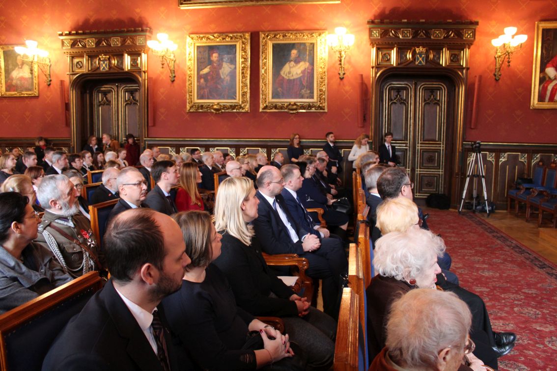 W trakcie uroczystości w auli Collegium Novum odczytano m.in. list Prezydenta RP Andrzeja Dudy. Głos zabrała także dr Monika Małecka, prezes Stowarzyszenia Ne cedat Academia, skupiającego członków rodzin profesorów aresztowanych 6 listopada 1939 r. w niemieckiej Sonderaktion Krakau oraz studentów i wykładowców tajnego nauczania.