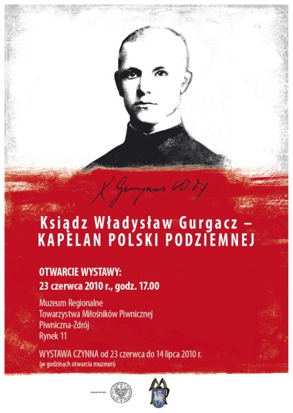 Muzeum Regionalne Towarzystwa Miłośników Piwnicznej oraz Oddział Instytutu Pamięci Narodowej w Krakowie zapraszają na wystawę „Ks. Władysław Gurgacz – kapelan Polski Podziemnej”. Wystawa otwarta została w Muzeum Regionalnym Towarzystwa Miłośników Piwnicznej (Rynek 11 w Piwnicznej-Zdroju) 23 czerwca 2010 r.