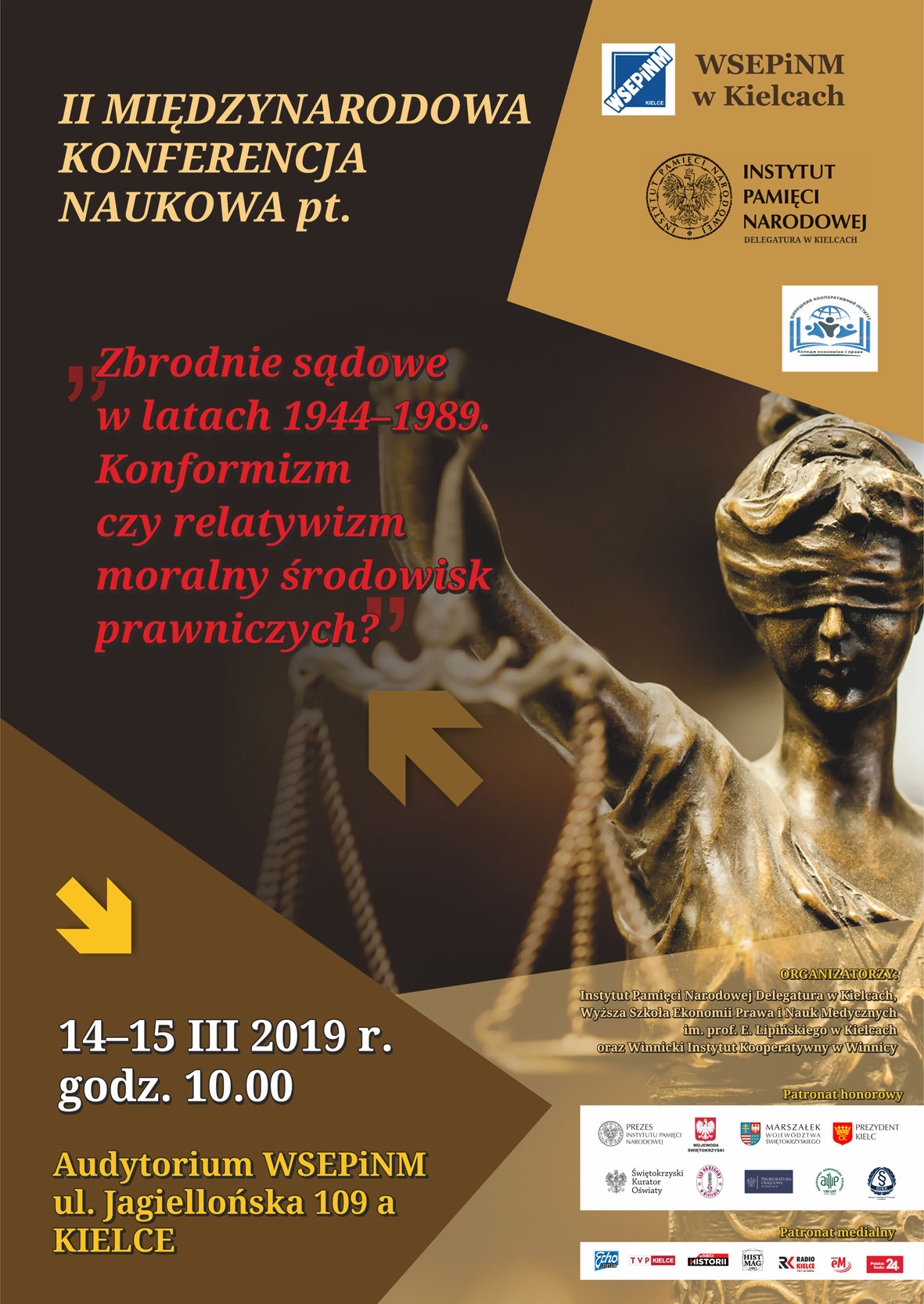 Organizatorzy: Instytut Pamięci Narodowej Delegatura w Kielcach, Wydział Prawa Wyższej Szkoły Ekonomii, Prawa i Nauk Medycznych im. prof. Edwarda Lipińskiego w Kielcach Współorganizator: Winnicki Instytut Kooperatywny w Winnicy