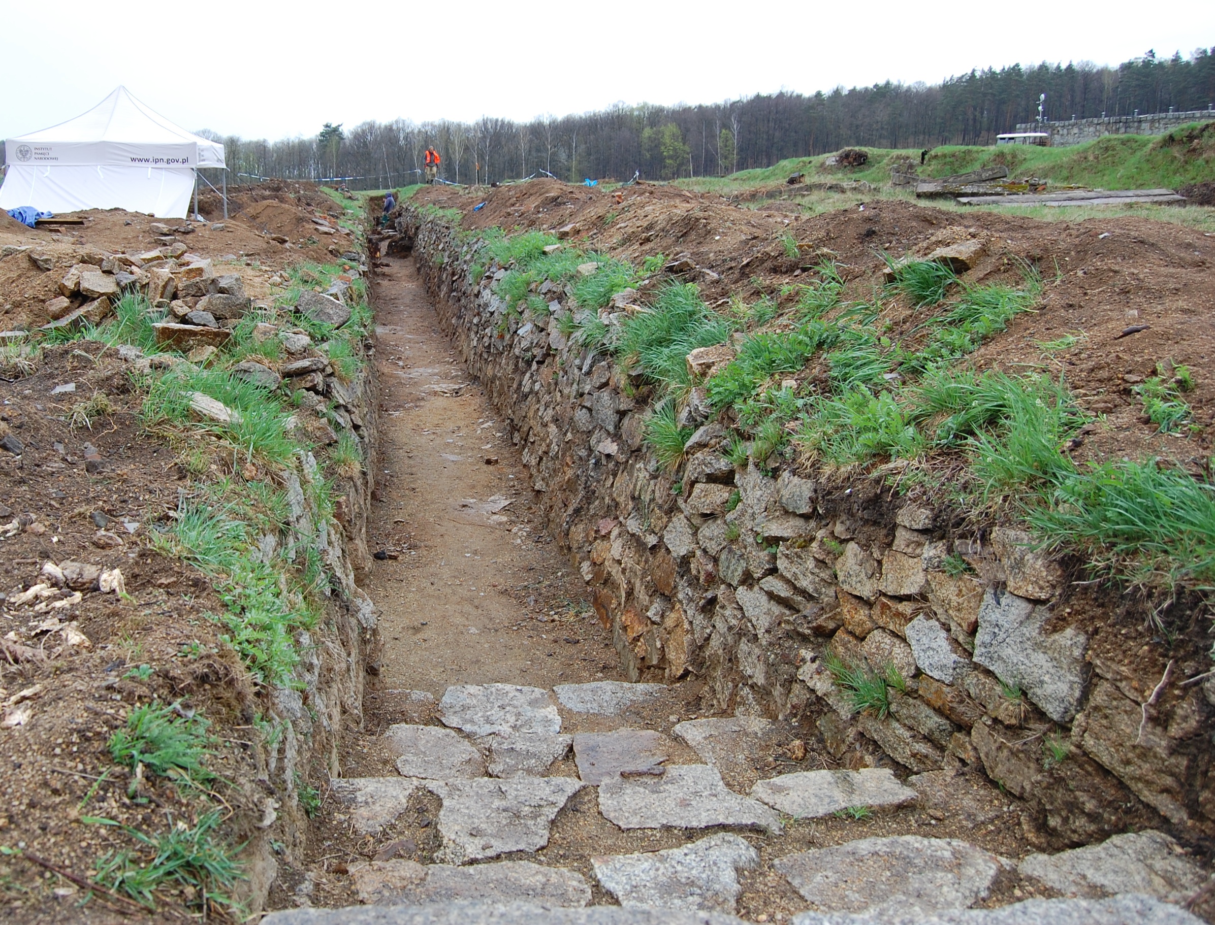 W toku prac prowadzonych w kwietniu dokonano całkowitego odkrycia rowu przeciwlotniczego. Podobnie jak w trakcie poprzednich etapów prac archeologicznych, także i teraz znaleziono artefakty z wyposażenie więźniów obozowych. To m.in. fragmenty ceramiki, kubki i miski, które zostały zabezpieczone i zostały przekazane biegłemu z zakresu konserwacji zabytków.