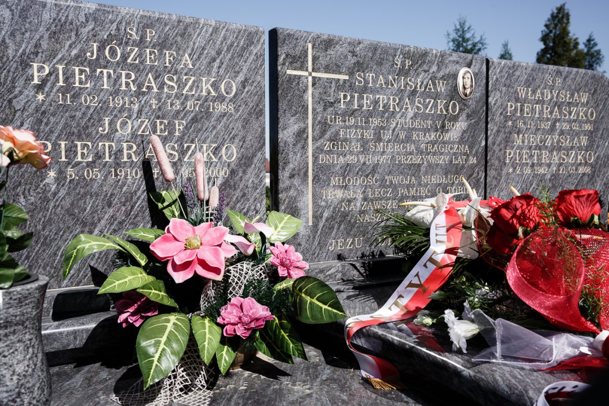 – Jeżeli trwa pamięć o Stanisławie Pyjasie, to nie możemy zapomnieć o Stanisławie Pietraszce, jego przyjacielu, studencie V roku fizyki UJ. Na kilka godzin przed śmiercią widział Pyjasa z obcym mężczyzną. Jego portret pamięciowy przekazał prokuraturze po wszczęciu dochodzenia. Dwa miesiące później ciało Pietraszki wyłowione zostało z Zalewu Solińskiego – przypomniał prezes IPN. Dr Szarek złożył kwiaty na grobie Pietraszki w Radziechowym-Wieprzu.