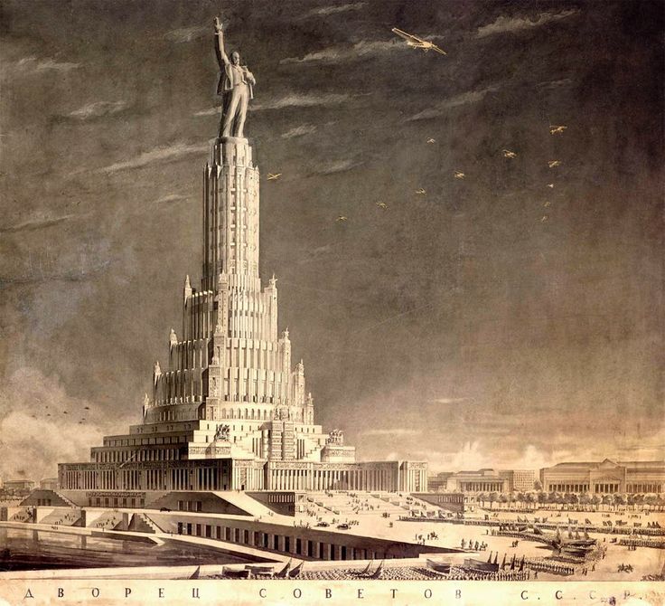 Projekt Pałacu Rad, który miał stanąć na miejscu soboru Chrystusa Zbawiciela w Moskwie. Fot. Wikimedia Commons -
