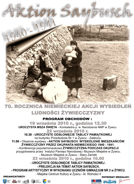 Burmistrz Żywca, Starosta Żywiecki, Miejskie Centrum Kultury w Żywcu, Muzeum Miejskie w Żywcu oraz Oddział Instytutu Pamięci Narodowej w Katowicach są organizatorami obchodów 70. rocznicy niemieckiej akcji wysiedleń ludności Żywiecczyzny – „Aktion Saybusch” 1940–1941, które odbyły się w dniach 19–23 września 2010 r. w Żywcu.