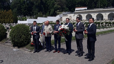 Delegacja Instytutu Pamięci Narodowej z prezesem Jarosławem Szarkiem na czele udali się do Lwowa na inaugurację Przystanku Historia. Swój pobyt na Ukrainie rozpoczęli od wizyty na Cmentarzu Łyczakowskim i Cmentarzu Orląt, gdzie złożyli kwiaty i zapalili znicze na mogiłach polskich bohaterów narodowych.